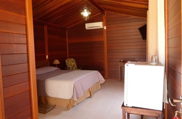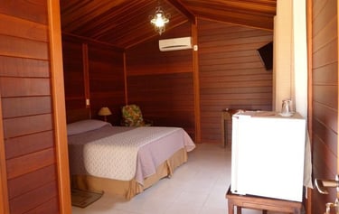 Com 26,25 m², o projeto Bozeman é um modelo compacto, ideal para pousadas, chalés ou suítes individuais, unindo conforto, praticidade e o charme da madeira natural.