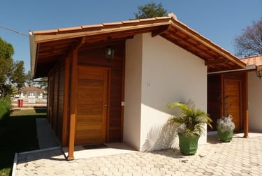 As casas de madeira Metodum são construídas com madeira maciça de Massaranduba, naturalmente resistente a cupins e fungos.