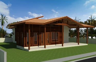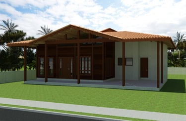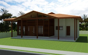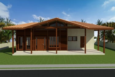 O projeto de casa de madeira Kentucky conta com 136,45 m² e um design contemporâneo que valoriza a amplitude e a iluminação natural. Com três dormitórios (sendo uma suíte), sala íntima, estar e jantar integrados, cozinha funcional e garagem coberta, é ideal para quem busca conforto e praticidade. Feita em madeira maciça de Massaranduba, garante resistência, beleza e conforto térmico, mantendo o padrão de excelência da Metodum Engenharia.