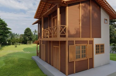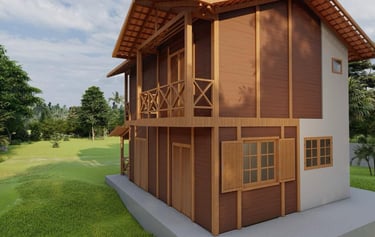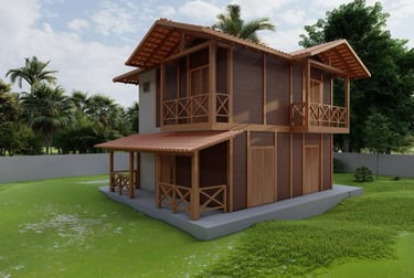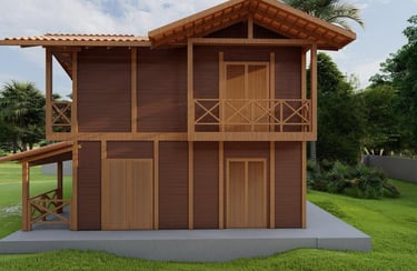 Com 108,18 m², o projeto Madison é um sobrado em madeira de lei que une elegância e funcionalidade. Seu design acolhedor conta com duas suítes no piso superior e ampla área social integrada no térreo, ideal para famílias que valorizam conforto e estilo natural.