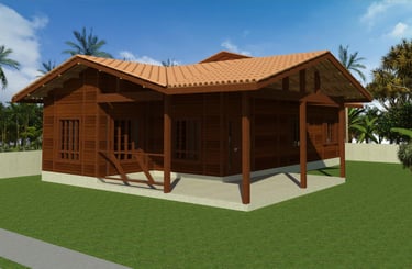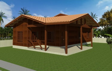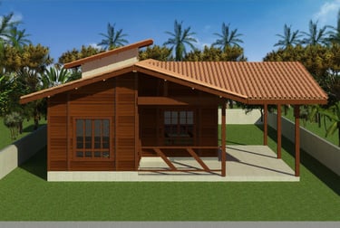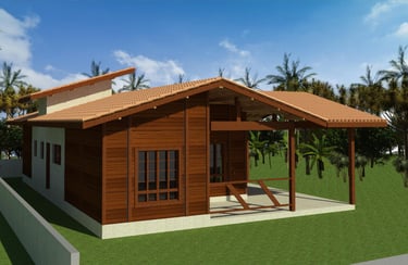 As casas de madeira Metodum são construídas com madeira maciça de Massaranduba, naturalmente resistente a cupins e fungos.