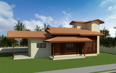 O projeto de casa de madeira Wisconsin é uma residência térrea de 111,75 m², com três dormitórios, sendo uma suíte, e ampla integração entre os espaços de estar e cozinha. Produzida em madeira maciça de Massaranduba, oferece conforto, durabilidade e um visual elegante e acolhedor.